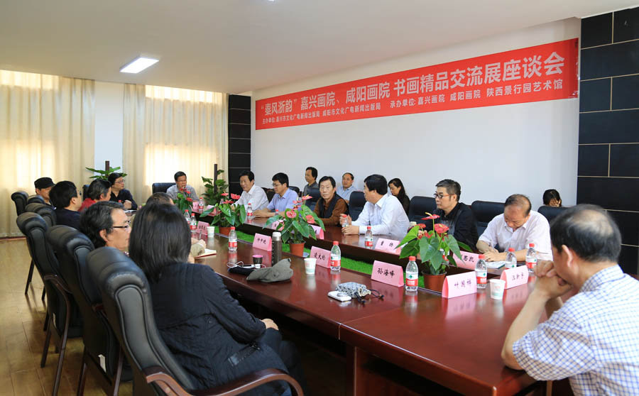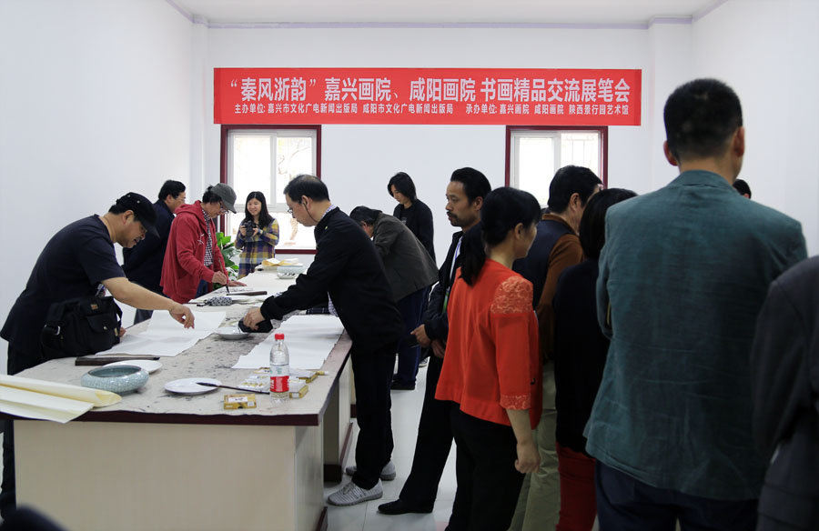 2015年5月21日,秦风浙韵——嘉兴画院、咸阳画院书画精品交流展在中国·咸阳·029艺术区隆重开幕。咸阳市人大常委会副主任党新安,咸阳市政协副主席赵昌华,嘉兴市文化广电新闻出版局局长、市文联主席金琴龙,嘉兴美术馆(嘉兴画院)馆(院)长凌加春,咸阳市文化广电新闻出版局局长闻俊辉,咸阳画院院长王小舟,咸阳市书协主席邓宇春、美协主席成中艾、陕西景行园艺术馆馆长景男等出席开幕式。