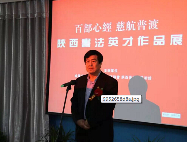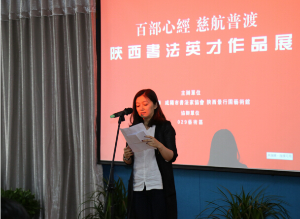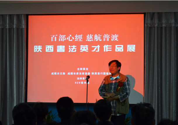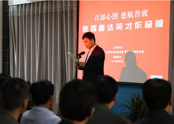 陕西景行园艺术馆副馆长卢阳先生发表讲话,详细介绍了此次“百部心经·慈航普渡”陕西书法英才作品展相关情况。