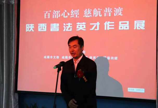 咸阳市文联党组书记贾黎明先生讲话,并宣布展览开幕!