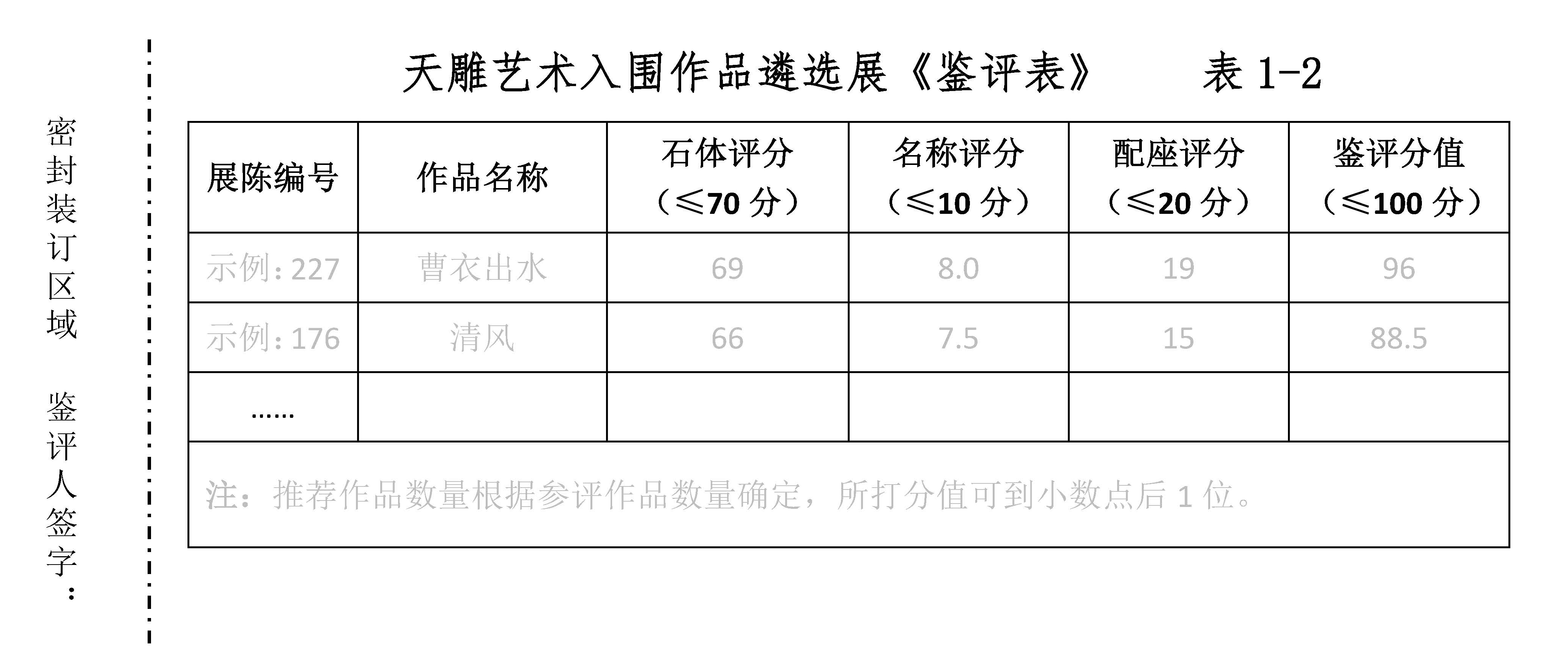 2.2参评作品采用统一铭牌。标识编号、名称、石种、尺寸、参评类别等,但不标识送评人姓名和联系方式。