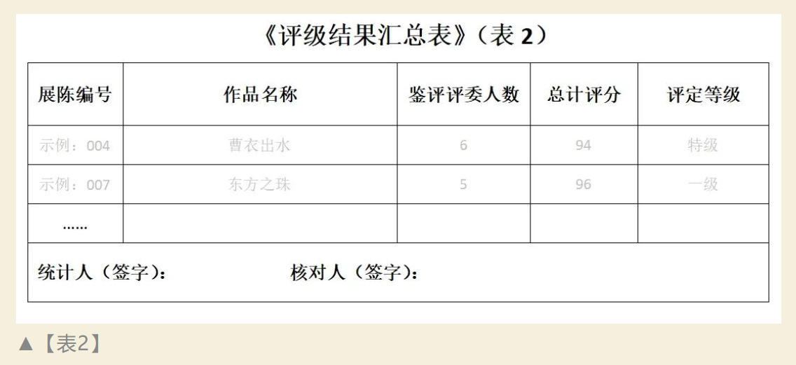各等级作品须同时满足相对应鉴评评委人数和总计评分。