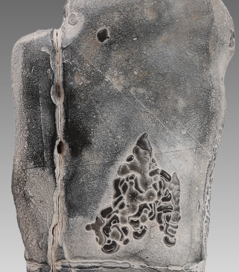 该石形似一部史书文献既有线装痕迹,皮面又现苍桑古旧感。老子骑牛呈现在封面,里面记载着道教鼻祖李聃——老子【道德经】及朴素的天人合一认识宇宙观,告诉人们这就是重见天日的【老子文集】。