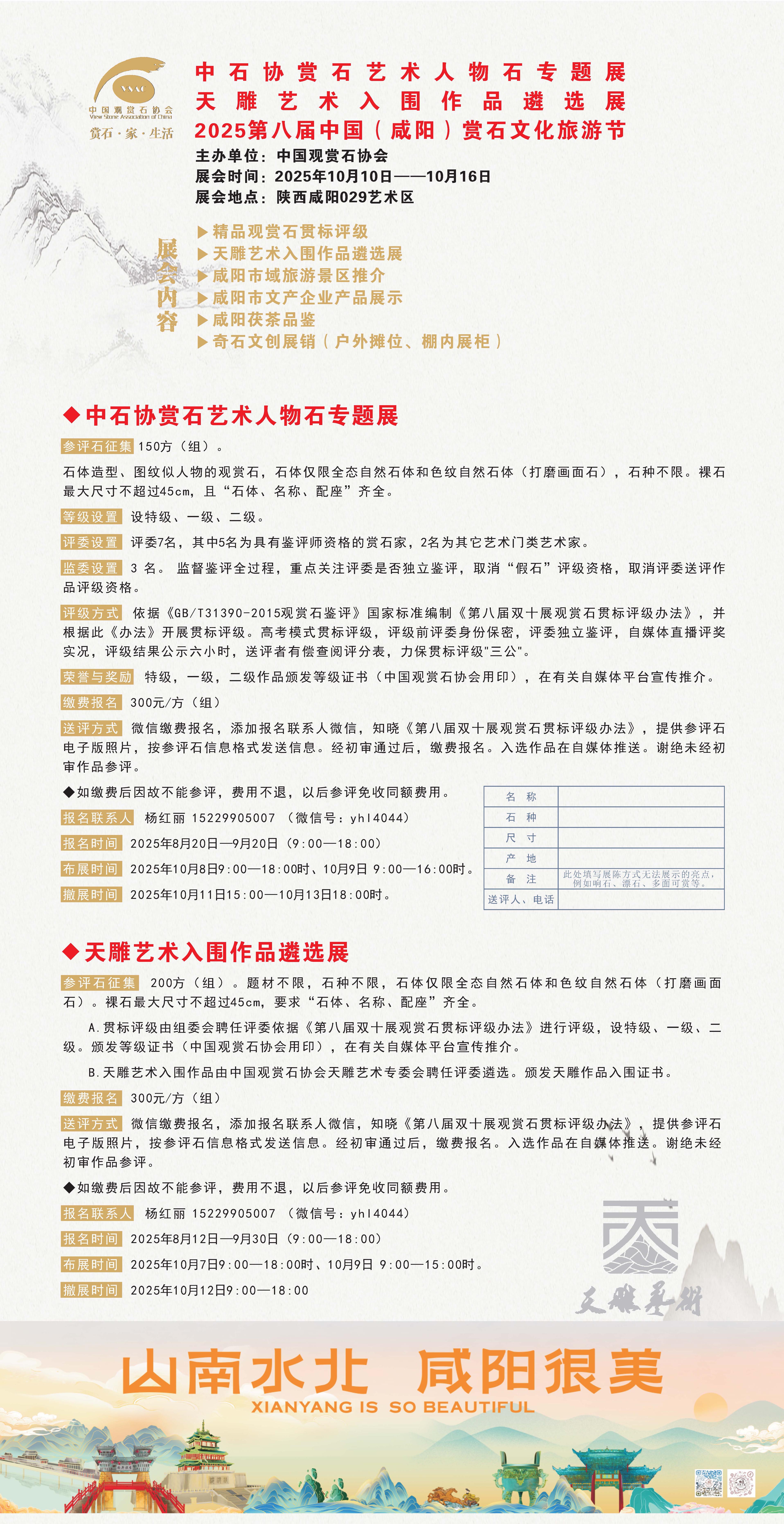 主办单位 中国观赏石协会 承办单位 咸阳市群众艺术馆 咸阳市文化投资发展有限公司 陕西泠尔氿文化发展有限公司 策展单位 中石协陈炉石专委会 陕西景行园(观赏石)艺术馆 展会时间 &nb...