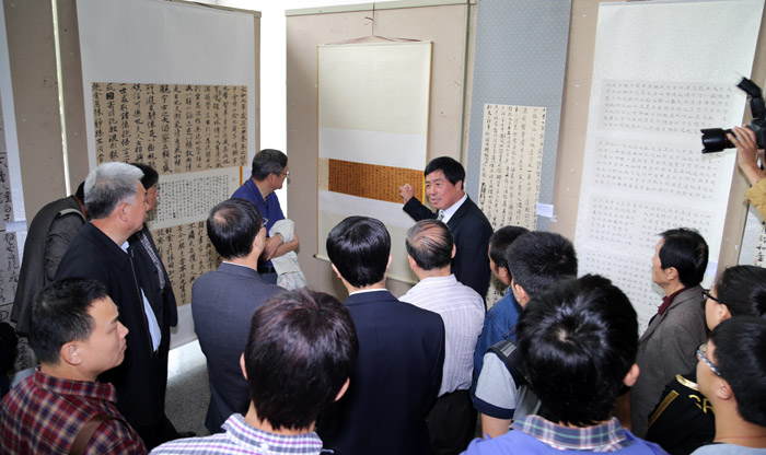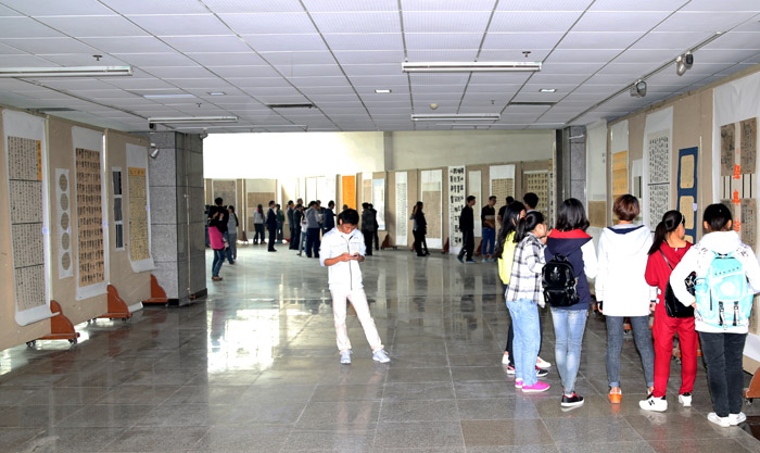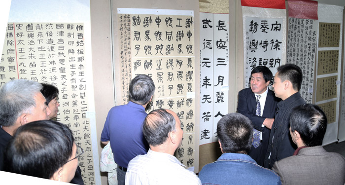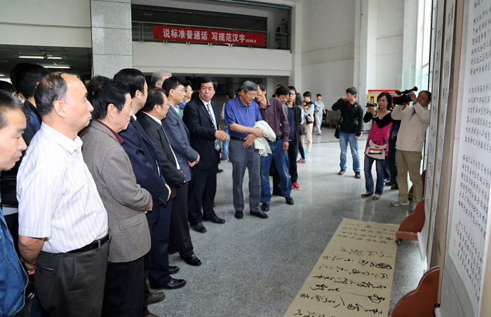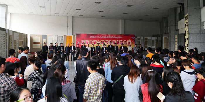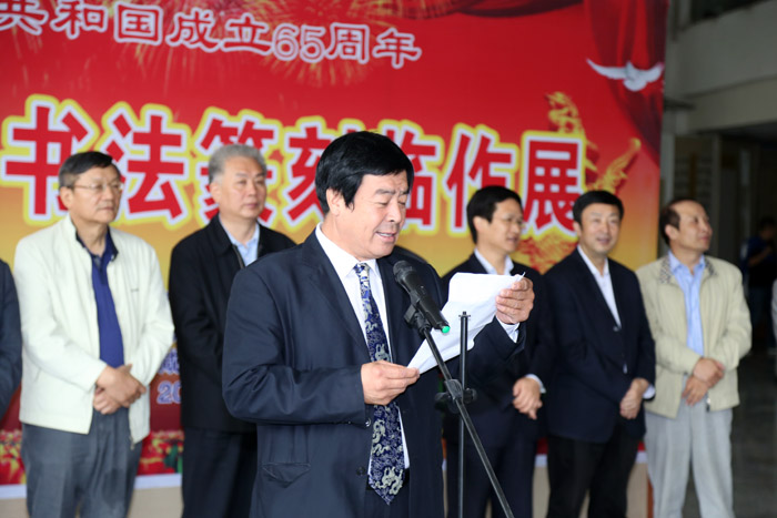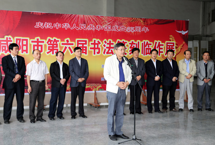 2014年10年10日上午,由咸阳市文联、咸阳师范学院于右任书法学院、咸阳市书法家协会联合主办的“庆祝中华人民共和国成立65周年”第六届书法篆刻临作展在咸阳师范学院艺术楼开幕。陕西省书协副主席王改明、咸阳市副市长孙亚政、咸阳市书协主席邓宇春、咸阳师范学院副院长马智勇等出席了开幕式并讲话。