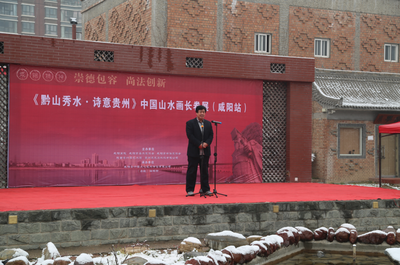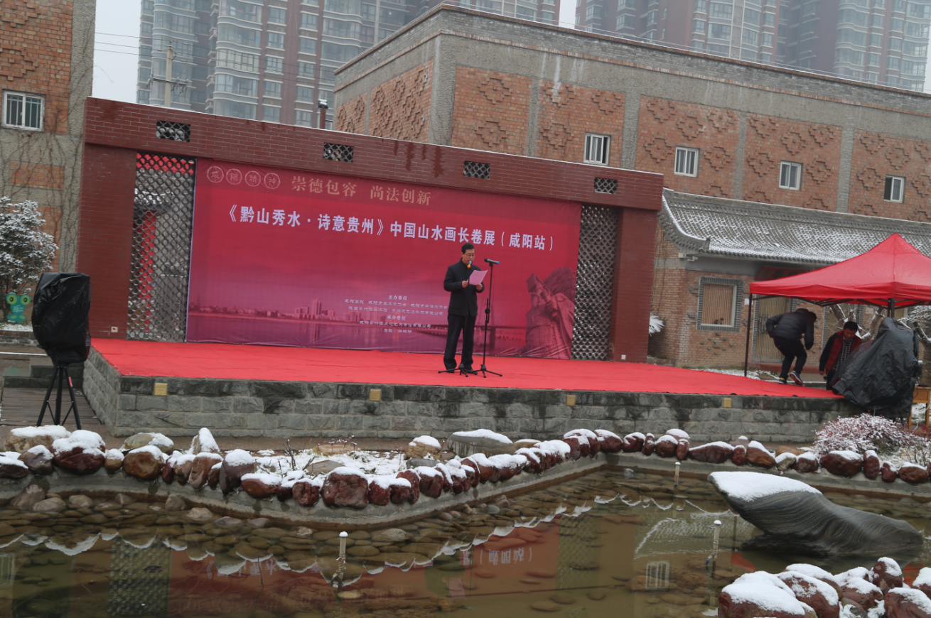 2016年1月12日大秦故都,德善咸阳迎来了第一场瑞雪,在梨花满树的029艺术区(宝泉路西段13路公交车终点站)里,《黔山秀水•诗意贵州》中国山水画长卷如期开展。