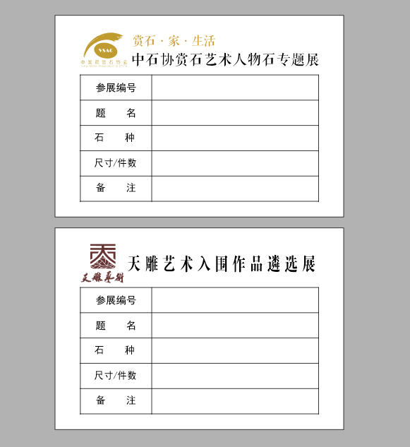 2.2参评作品采用统一铭牌。标识编号、名称、石种、尺寸、参评类别等,但不标识送评人姓名和联系方式。