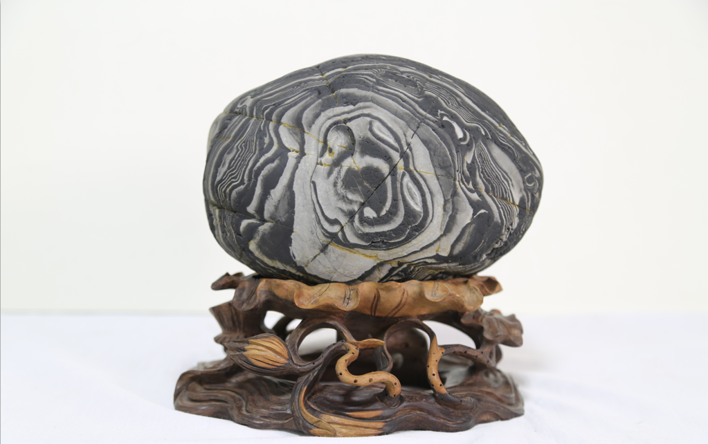 观此石,纹路流畅,禅意颇浓,一佛陀静坐其中,若有所悟 ,似有所言却无音。