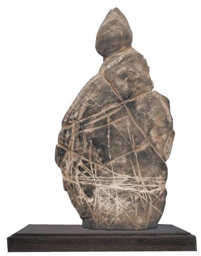 陈炉石,似一人物,头戴尖帽。大腹便便,双手背后。